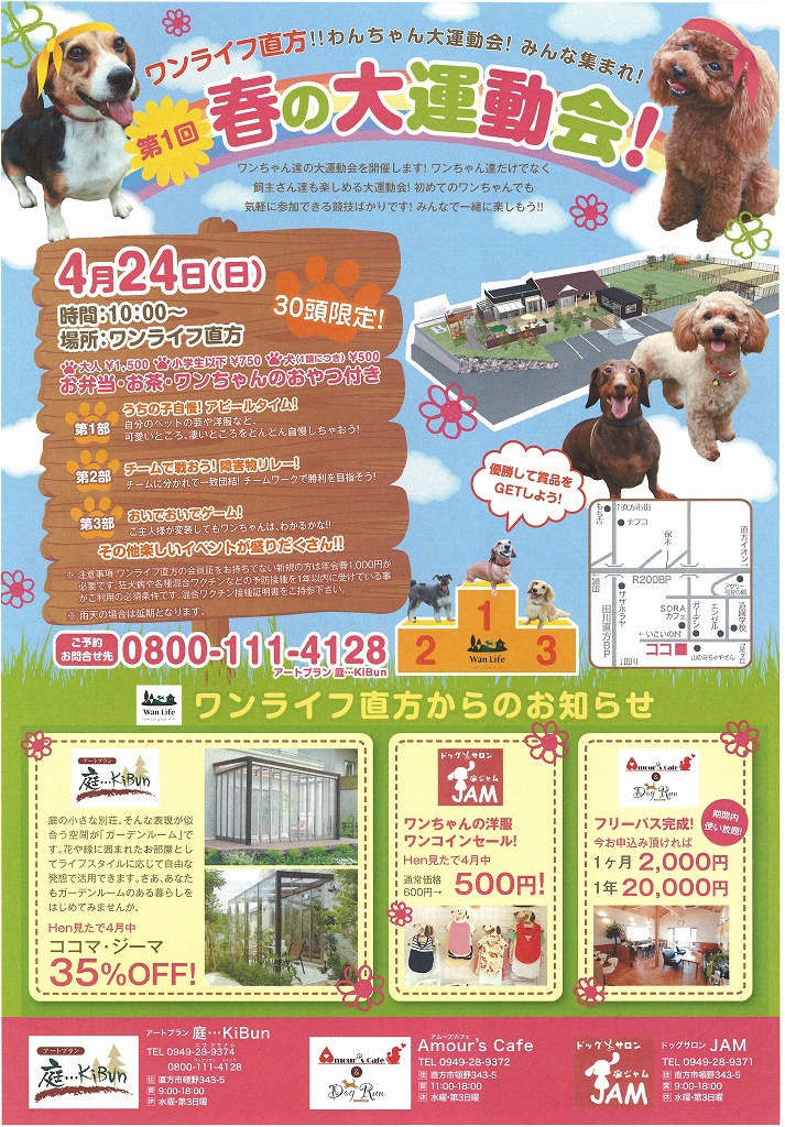 ドッグラン、アムーズカフェ、ドッグサロンJAM、ワン・ピース、アートプラン 庭…KiBunの日常をお届けします。