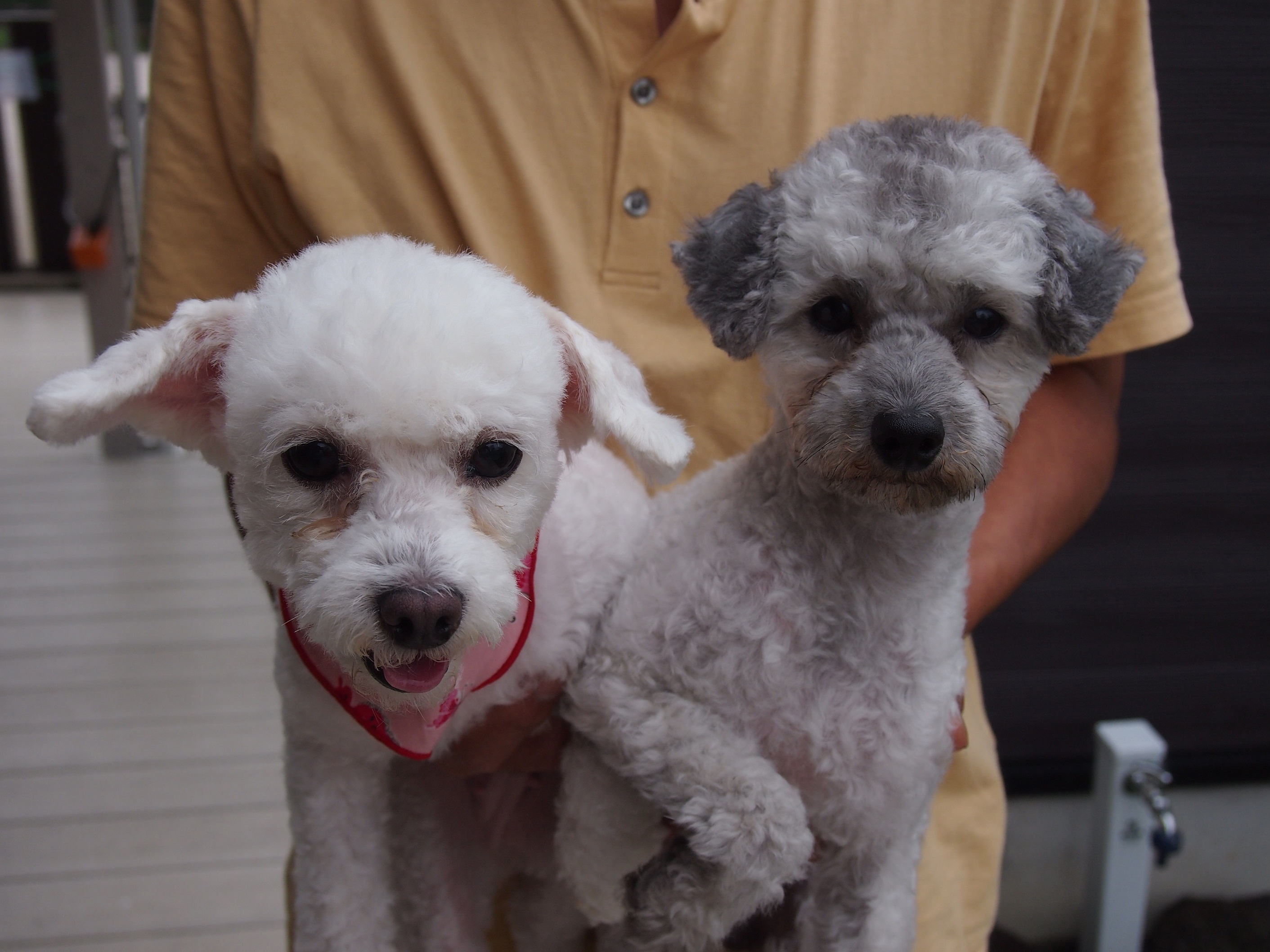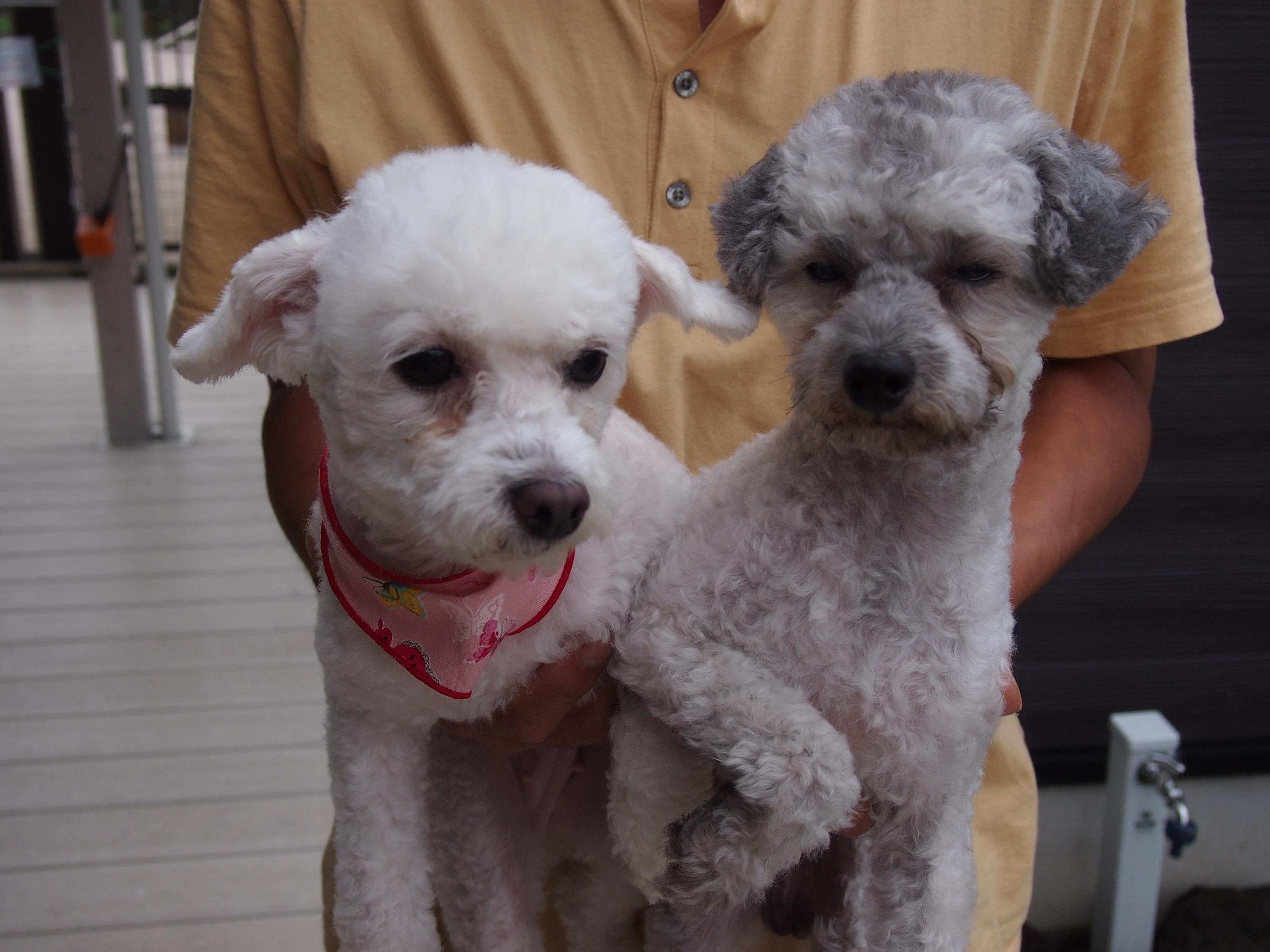 隣のシルバーのワンチャンは、お友達わんちゃんのようです。